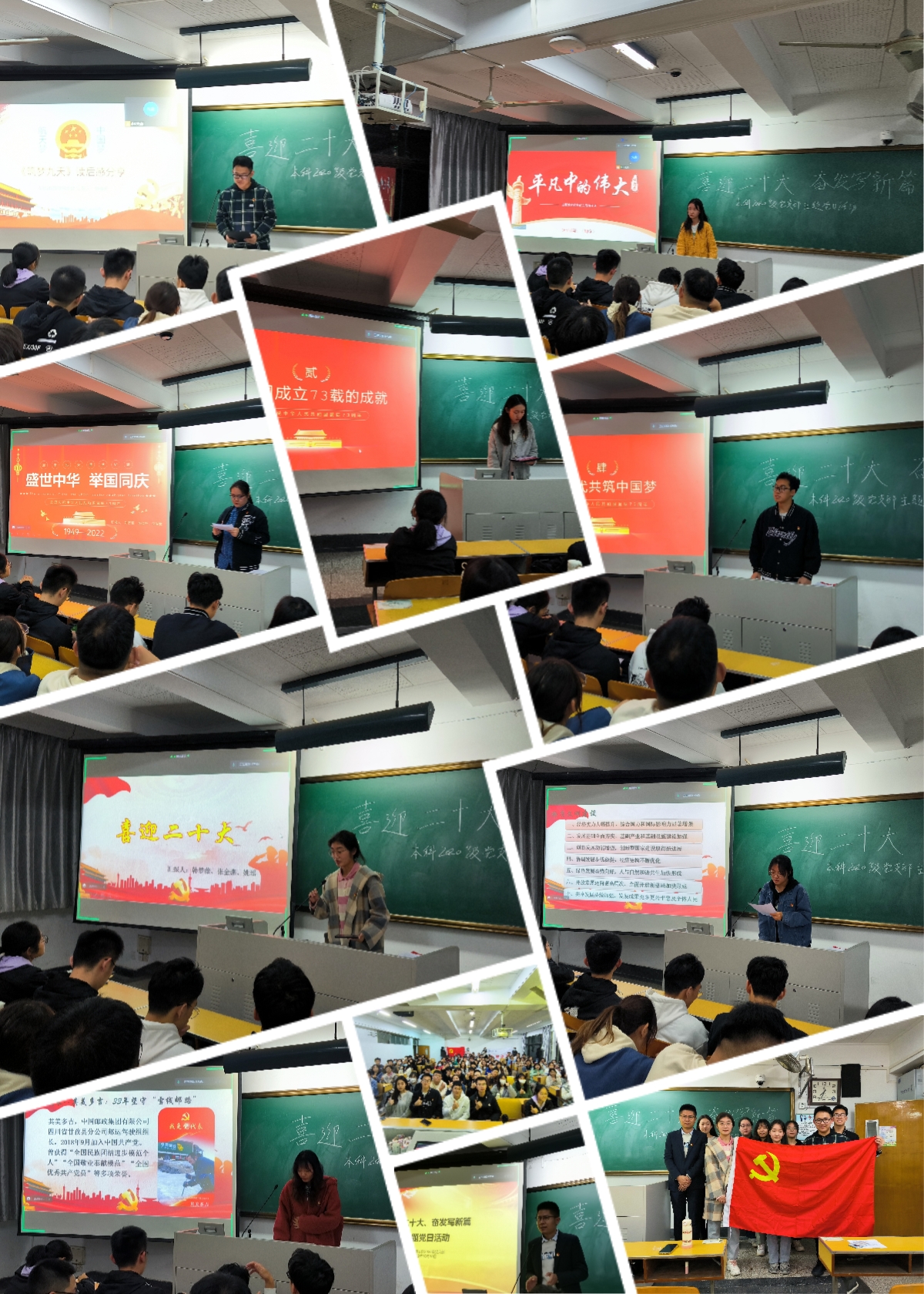 管理学院本科2020级党支部于近日在教西201组织开展“喜迎二十大、奋发写新篇”主题朋辈宣讲活动,支部入党积极分子和部分团员代表参加宣讲活动。朋辈宣讲以支部全体学生党员为主讲人,回望党的一大到二十大以来光辉历程,总结新中国成立73年来的伟大成就,结合暑期开展的主题征文活动、以我国在航空航天等方面的先进事迹为蓝本畅谈所思所感,带动广大学生进一步感知新中国成立73周年不平凡的风雨历程。宣讲结束后参加活动的青年学生集体点赞合影,表达对新中国成立73周年的美好祝愿和对党的二十大胜利召开的美好祝福。