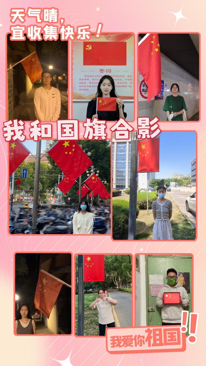 国庆假期期间,支部全体学生党员和部分入党积极分子发起“我与国旗合影”活动,通过与国旗合影烘托喜迎国庆的良好节日氛围,引导广大学生热爱国家、热爱国旗、欢度国庆。