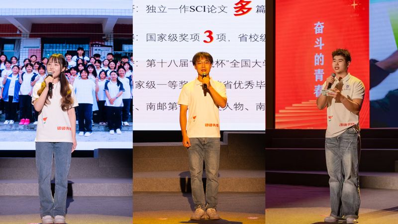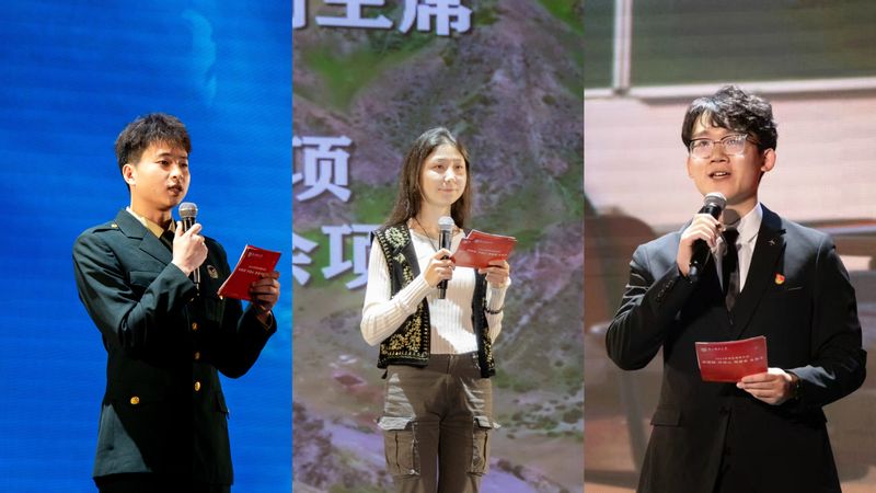 在“奋斗的青春”篇章中,刘青山副校长为在创新创业、社会实践、志愿服务方面涌现的先进集体和个人代表颁奖。李子君、眭钧阳和张小岩分别讲述了自己在志愿服务、科研创新和美育工作中砥砺求索的故事。李子君放弃985高校推免机会,投身西部支教;眭钧阳坚持科研,带领团队攀登科创高峰;张小岩在学校和军营投身美育工作,综合发展,激发潜能。他们的事迹激励着更多南邮学子在各自的领域里奋力拼搏,为国家的发展、社会的进步贡献青春力量。