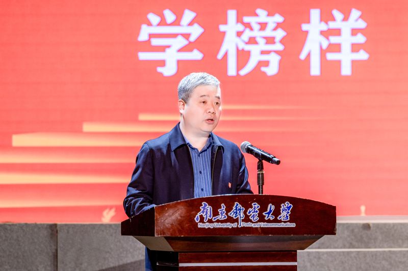 蒋国平副书记宣读表彰决定。他指出,在过去的一年中,南邮学子踔厉奋发、志存高远、敢于拼搏、不断挑战,在学术科研、创新创业、社会实践、志愿服务等领域获得了丰硕成果;南邮教师悉心教导、用心培养学生,生动诠释了园丁的使命与担当;南邮宿管阿姨给予学子们无微不至的关怀,用行动温暖学生的心,彰显了奉献的力量。他希望受表彰的集体与个人谦虚谨慎、再接再厉,也希望更多师生能向榜样学习、与榜样同在,在新的征程上,明确目标、接续奋斗。